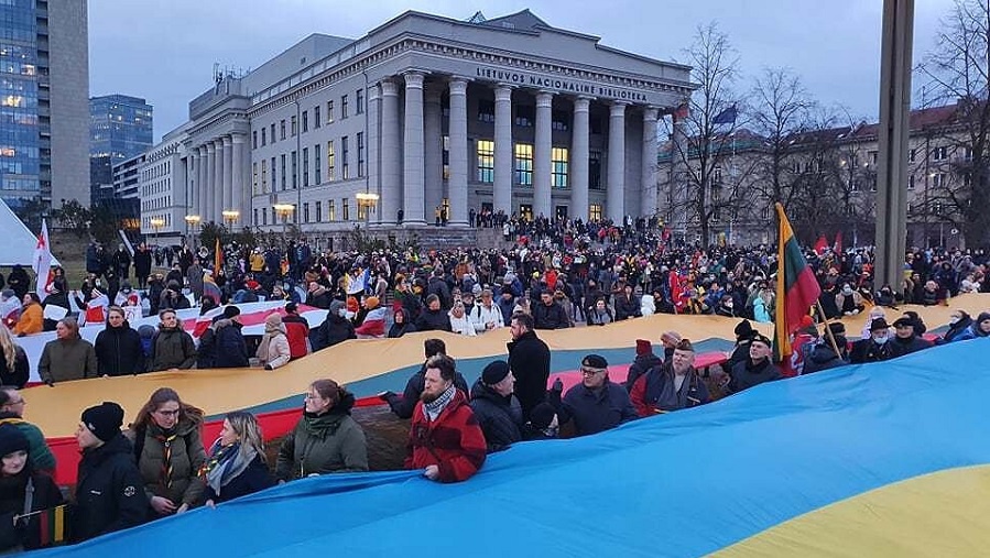 Акция в поддержку Украины в Вильнюсе 24 февраля 2022 года. Фото: E. Blažio / LRT.lt