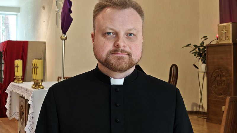 Ксендз Раймундас Юролайтис поздравляет всех висагинцев со светлой Пасхой, на литовском, польском и русском языках