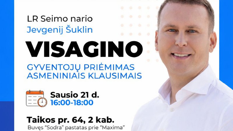 LR Seimo narys Jevgenijus Šuklinas kviečia Visagino gyventojus į priėmimą asmeniniais klausimais