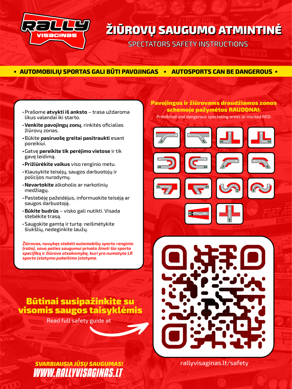 Администрация Висагинского самоуправления информирует, что 1–2 мая 2026 года состоятся раллийные соревнования, один из скоростных участков которых пройдет в городе Висагинас. Сервисная зона ралли будет организована на улицах Парко и Сантарвес. Участки этих улиц, расположенные ближе к озеру Висагинас, будут закрыты с 8:00 1 мая до 22:00 2 мая.